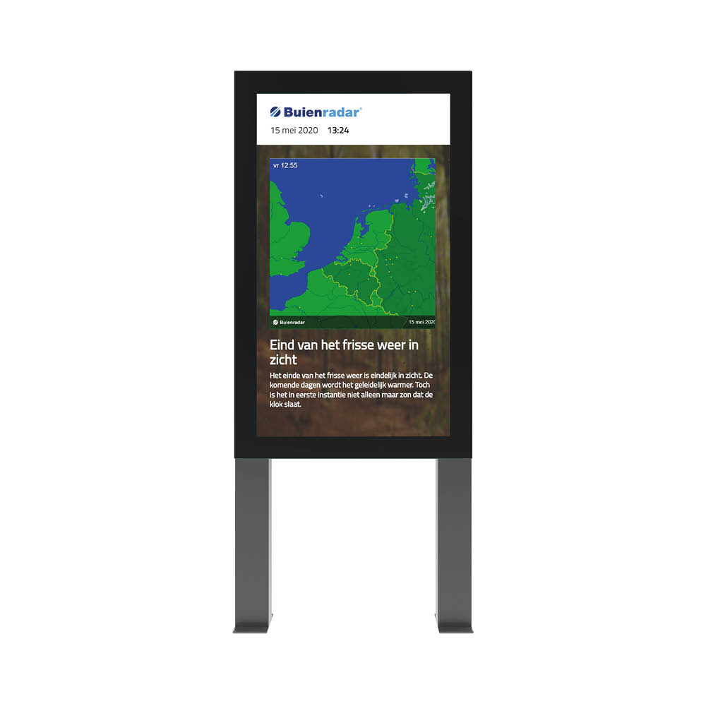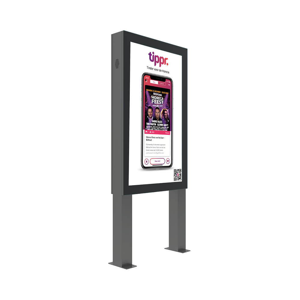 Laat uw boodschap 24 uur per dag, 7 dagen per week, krachtig stralen. De Digitale Abri met dubbele voet is hét instrument voor de meest veeleisende digital signage behoeften en is specifiek ontworpen om uitstekend te functioneren in alle outdoor omstandigheden.